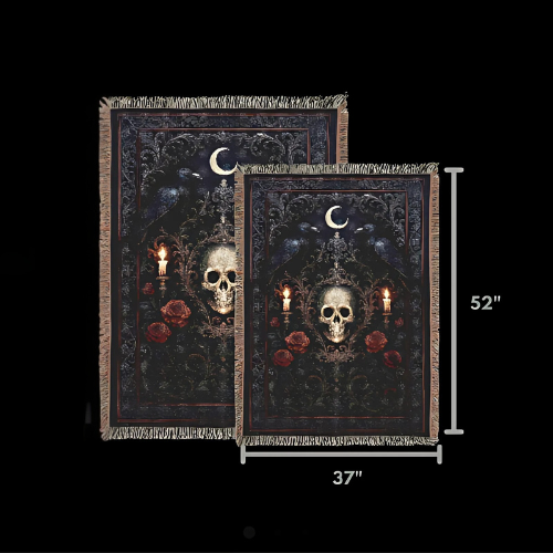 Measuring 52 by 37 inches, this handwoven blanket is perfect for cozying up your space, adding a touch of dark elegance, or gifting to someone who loves the design.